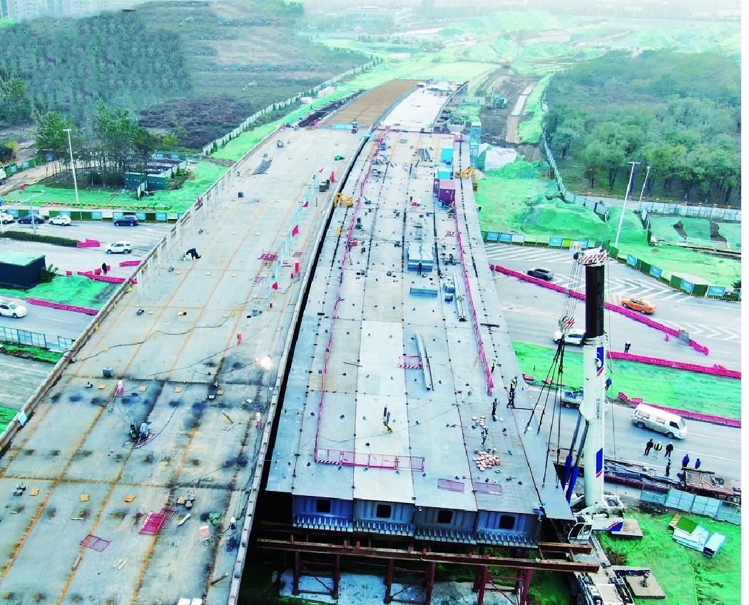 我方承建的二標(biāo)段西起灞河?xùn)|路以東,東至香槐六路,主線總長1331m,起訖樁號為K1+600~K2+931,其中隧道道段總長223m,U型槽217m,橋梁段總長為672m,總用鋼量5100噸。
