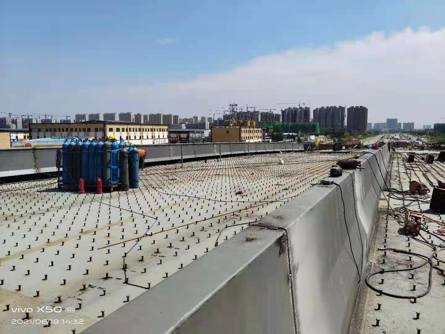 該工程榮獲山東省鋼結(jié)構(gòu)金獎。工程內(nèi)容:鋼箱橋梁制作、安裝,主橋采用鋼箱梁,鋼橋梁跨徑為40米+65米+40米=145米,總用鋼量2200噸。