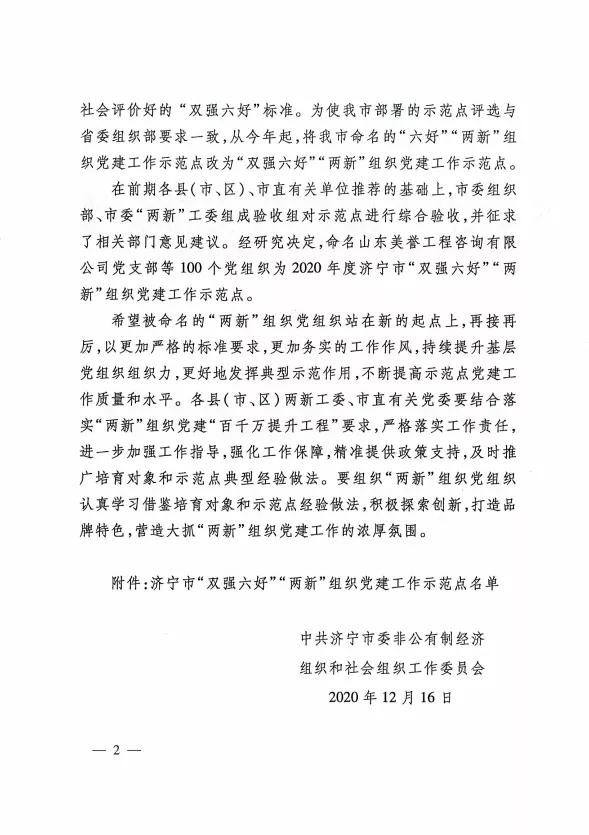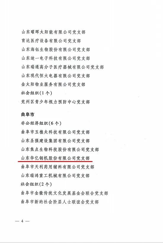 近日,我公司黨支部被濟寧市委組織部授予“雙強六好”“兩新”組織示范點,這是在繼2020年7月公司黨支部書記楊鴻同志榮獲曲阜市“紅帆能手”后,華億鋼機在黨支部建設方面又獲得的一項濟寧市級榮譽。