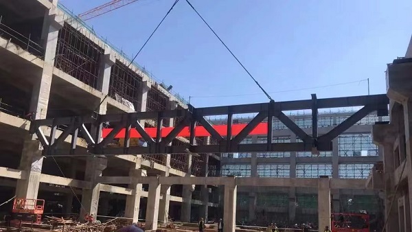 新體校建設(shè)項目位于濟寧市太白湖新區(qū)許莊街道,荷花路東側(cè),北湖西路南側(cè),濟寧市體育中心院內(nèi),總建筑面積60426.4㎡。公司承建的4#樓綜合訓(xùn)練館鋼結(jié)構(gòu)工程,總建筑面積為:29225.93㎡,其中地上建筑面積為 22524.28㎡,地下建筑面積為 6701.65㎡;采用鋼桁架結(jié)構(gòu)體系,結(jié)構(gòu)長度90米,寬度32.4m-44.7m,投影面積3469.5㎡。鋼桁架總重量2154.63噸。