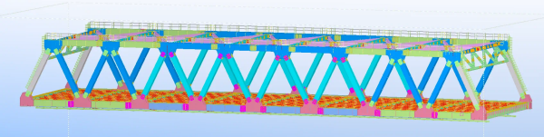 鄒濟高速九標段工程地點位于山東省濟寧市微山縣和任城區(qū)境內(nèi),項目部主線起止里程:K32+045.3-K38+642.9,全長6.6km,路線整體呈東西走向。泗河特大橋作為主線特大橋,第35聯(lián)跨越泗河西大堤,上部結構采用105m簡支鋼桁梁,整幅設計,橫橋向兩片主桁,桁間距28.5m。下部結構過渡采用三柱式等截面矩形實體墩,每個墩柱承臺下接4根1.6m樁基,樁基均為鉆孔灌注樁。本橋平曲線要素:(橋梁起點、終點樁號:K34+957.589);緩和曲線(起點樁號:K34+957.589、終點樁號:K35+287.589,A:978.3);圓曲線(起點樁號: K35+287.589、終點樁號:K37+956.512,半徑R:2900m);緩和曲線(起點樁號:K37+956.512、終點樁號:K38+286.512,A:978.3);(起點樁號:K38+286.512、橋梁終點),橋墩平行布置。